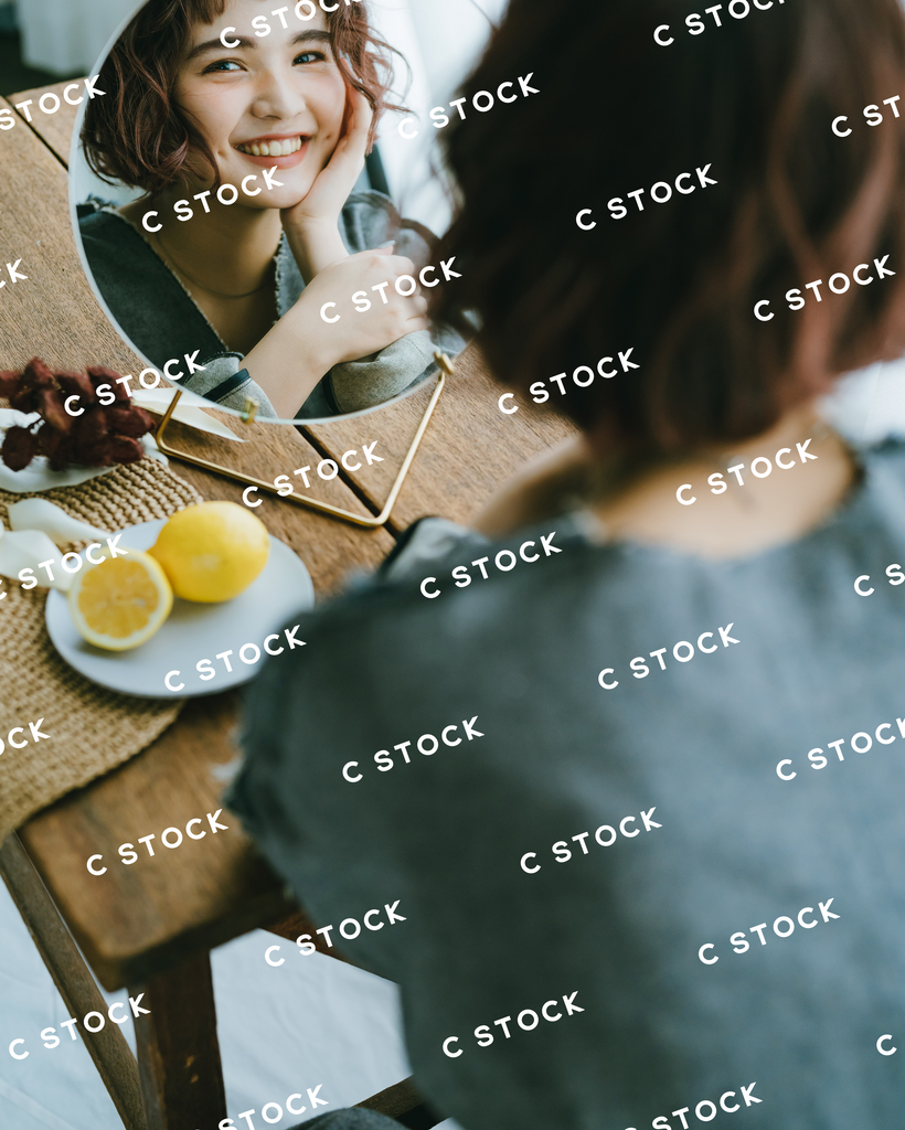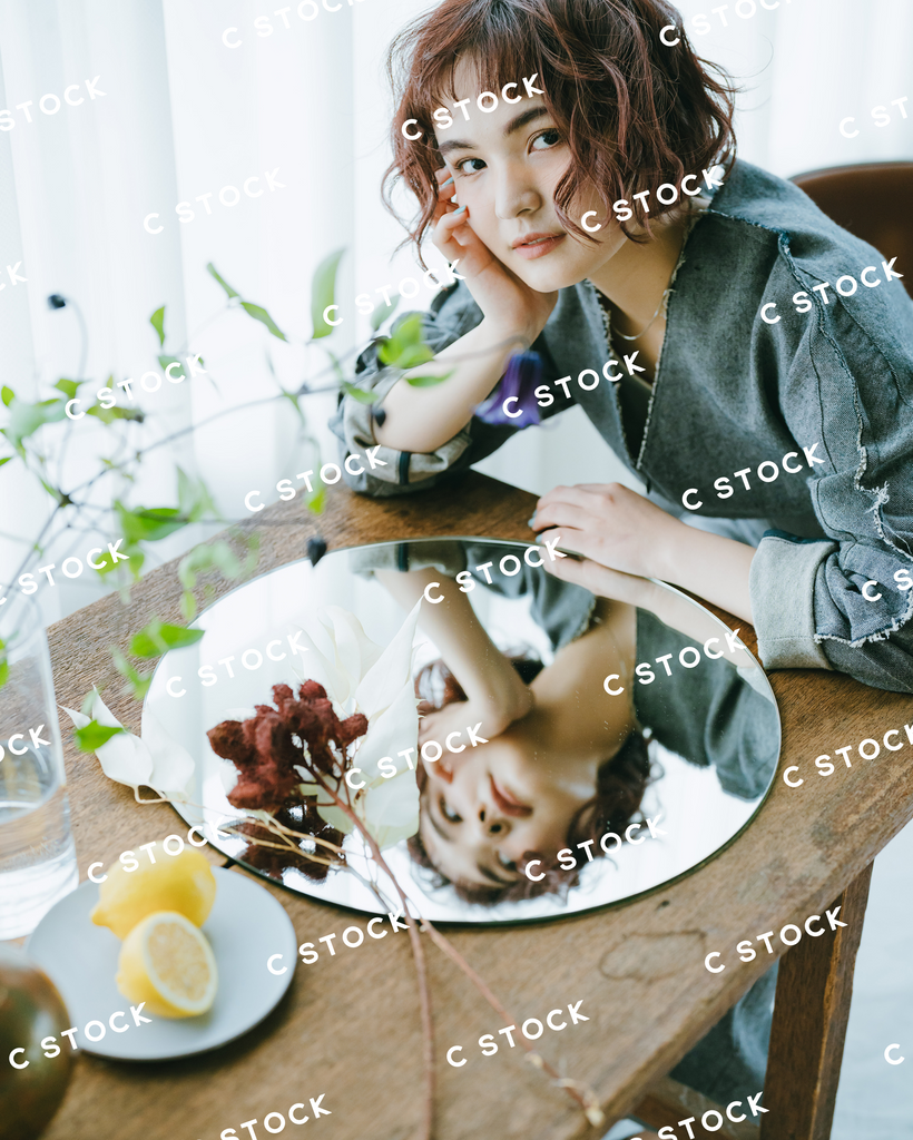 家具や撮影小物を主体に撮影構図を考え、スタイリングしました。机や椅子などのインテリア、花や果物などの小物はまるで自分の部屋を飾っている時のような印象があります。白い布とアンティークの椅子も、少し非日常なこだわりポイントです。コロナ禍が落ち着いた時の撮影ということもあり、れっきとした撮影データですが、どこか身近に感じれるような雰囲気に仕上げました。